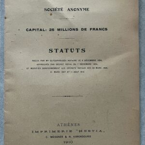 Rare, 1910, Banque d’Orient Statuts, Original Greek Banking Document, Estia Athens