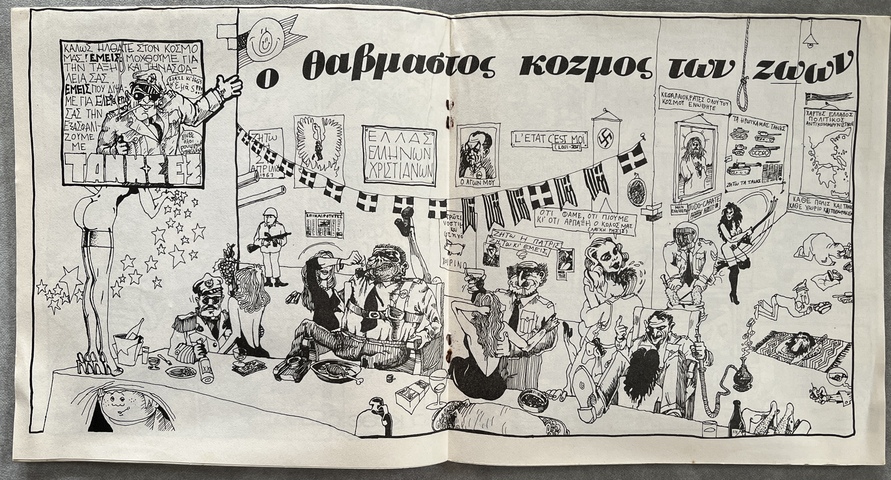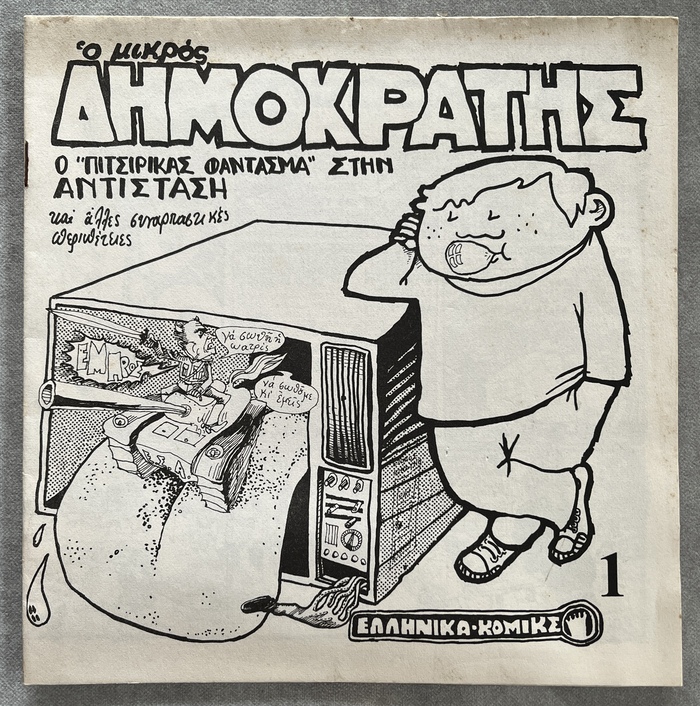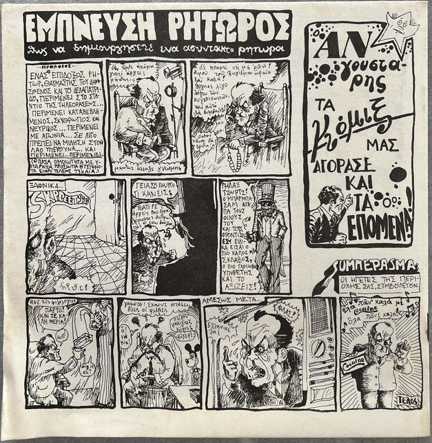 Produced immediately after the fall of the 1967–1974 military junta, the comic reflects the emergence of free political expression through satire, caricature, and countercultural aesthetics.