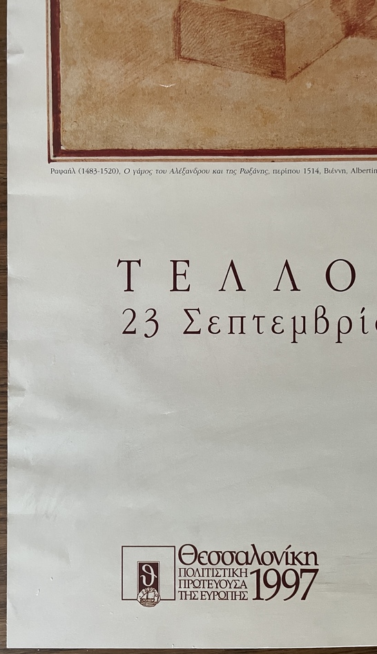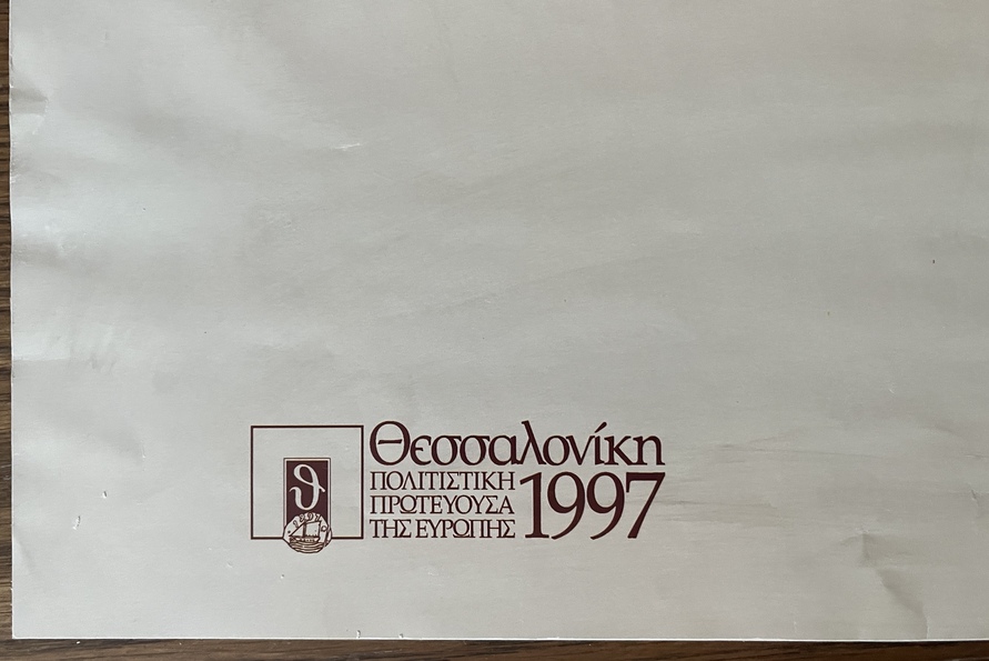 This striking and historically significant exhibition poster was issued for one of Thessaloniki’s major cultural events during its designation as European Cultural Capital (1997).
