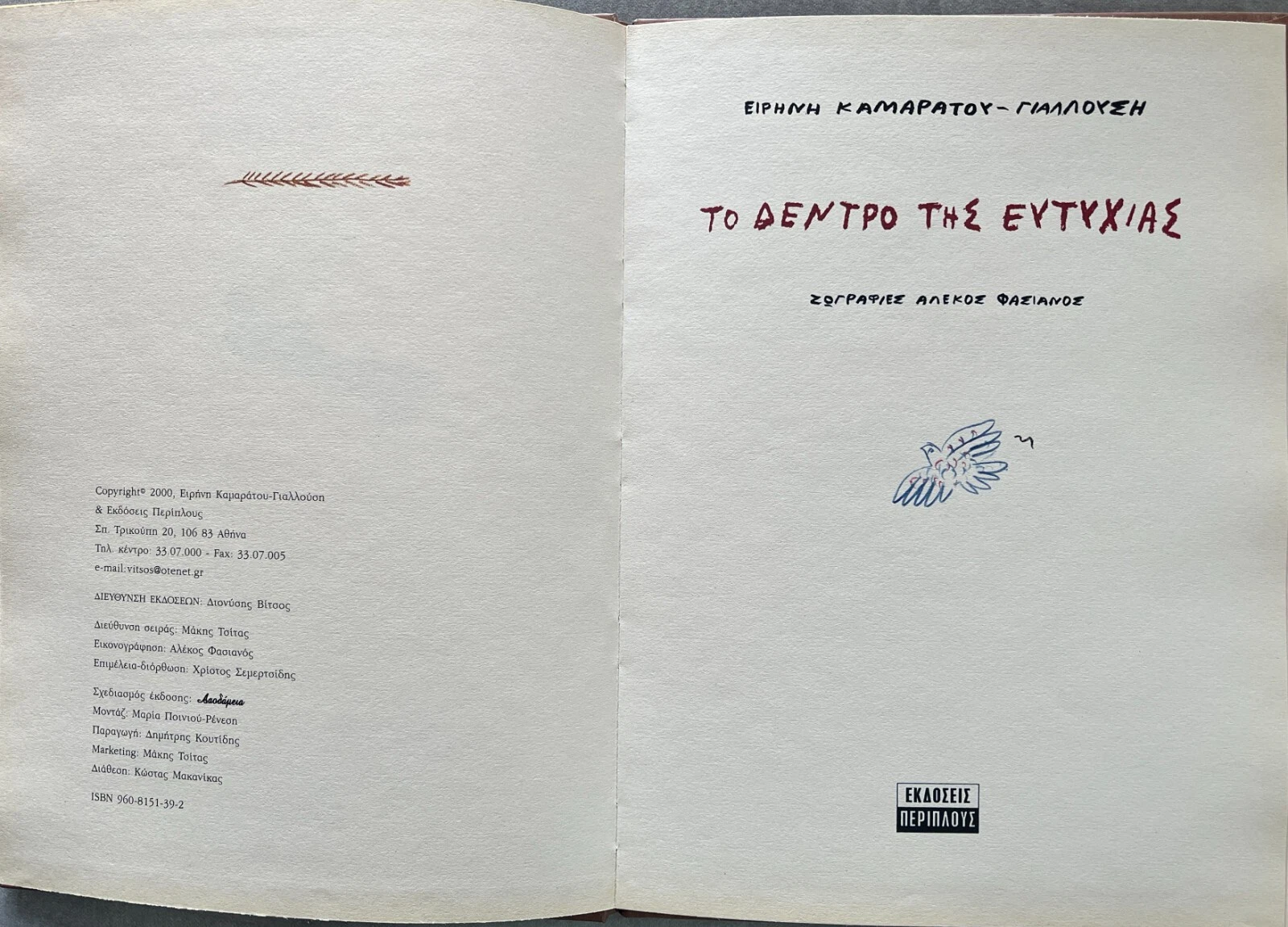 Rare first edition of Το Δένδρο της Ευτυχίας (The Happiness Tree) by Irini Kamaratou-Giallousi, fully illustrated by the celebrated Greek painter Alekos Fassianos.