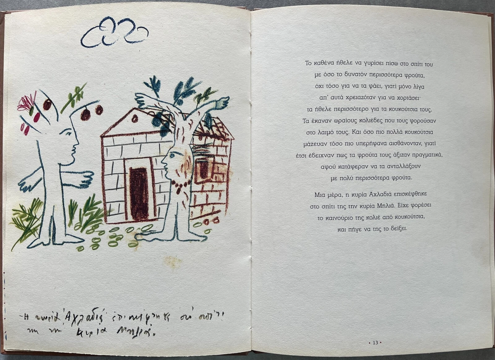 Published in Athens in 2000 by Periplous, this children’s book stands out for its full-page illustrations, showcasing Fassianos’ iconic style—bold lines, flowing forms, and poetic, myth-inspired imagery.