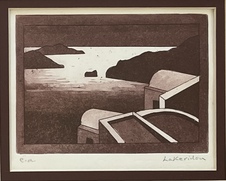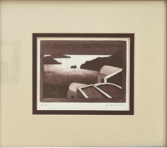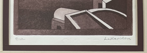 Yioulika Lakeridou studied at the École des Beaux-Arts in Paris and at the Sorbonne. Her work is known for its stylized depiction of Mediterranean landscapes, with an emphasis on structure, light, and form. Her prints are widely collected for their balance between modernism and architectural clarity.