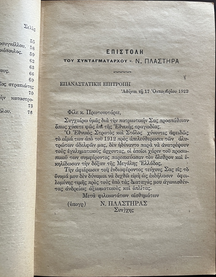 Of particular importance is the inclusion of a letter by Nikolaos Plastiras, adding strong historical and political relevance.