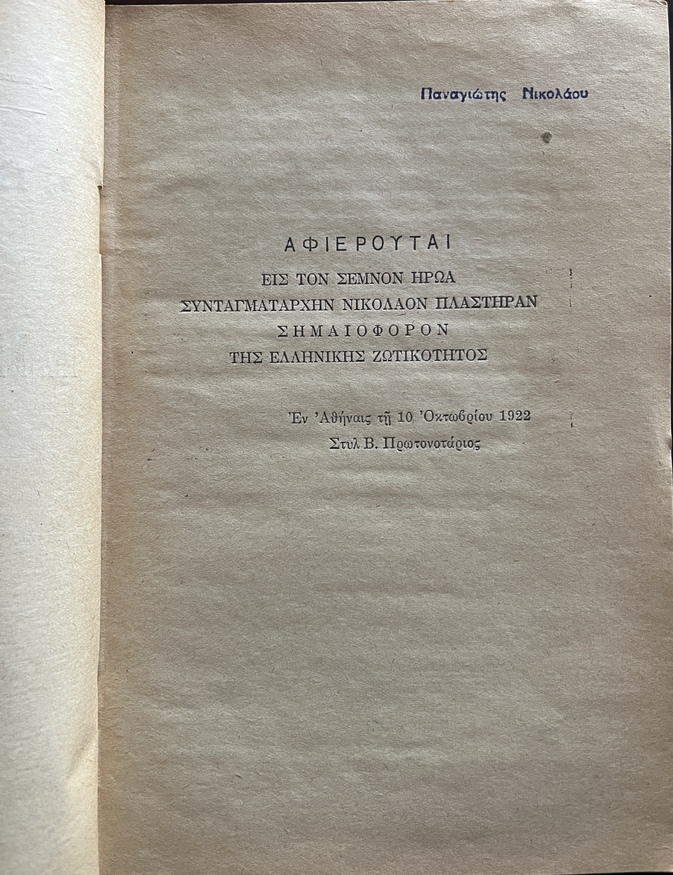 Σπάνια Έκδοση 1922 – Η προδοθείσα ΕλλάςΣτυλιανός Β. Πρωτονωτάριος – Μικρασιατική Καταστροφή