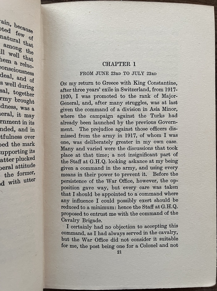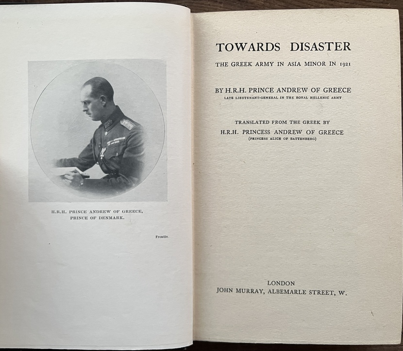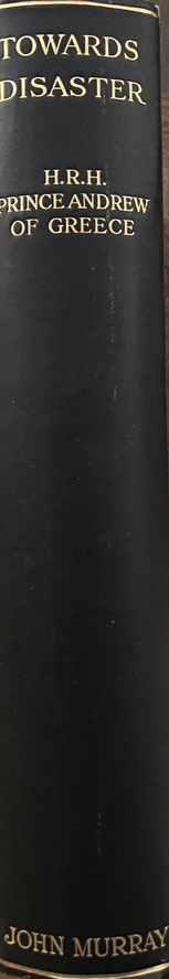 Original and rare first edition (1930) of Towards Disaster: The Greek Army in Asia Minor in 1921 by Prince Andrew of