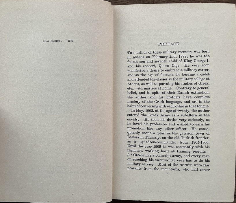The book holds particular significance not only for its historical content but also for its royal authorship: Prince Andrew of Greece and Denmark (1882–1944) was the father of Prince Philip, Duke of Edinburgh, and the seventh child of King George I and Queen Olga of Greece. His wife, Princess Alice of Battenberg, translated the work into English.