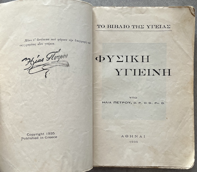 Rare, 1935, Ilias Petrou, Rare Greek Natural Hygiene Book, First Edition, Earliest Publication