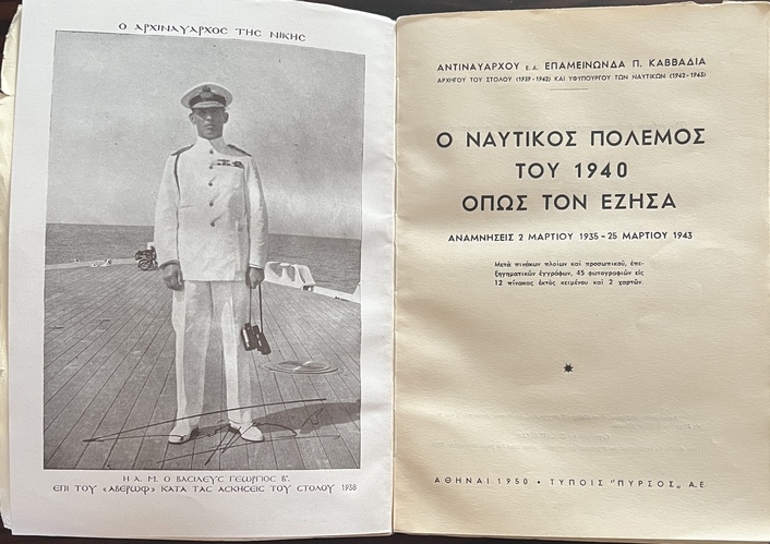 Rare and collectible signed first edition of Ο ναυτικός πόλεμος του 1940 όπως τον έζησα (The Naval War of 1940 as