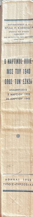 Title: Ο ναυτικός πόλεμος του 1940 όπως τον έζησα (The Naval War of 1940 as I Experienced It)