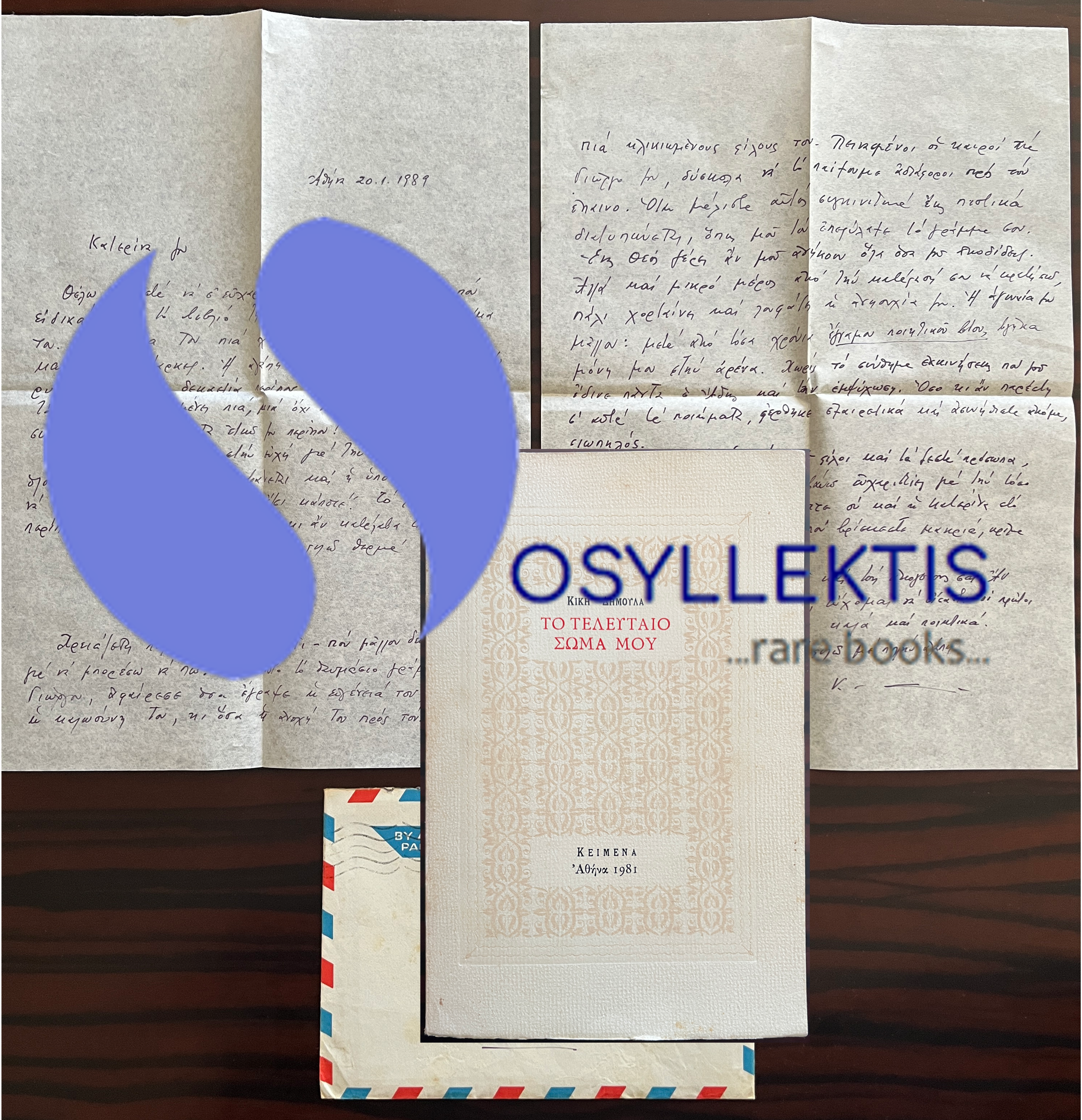 Rare Collectible Lot – Kiki Dimoula – Handwritten Signed Letter (1989) & First Edition with Inscription (1981)