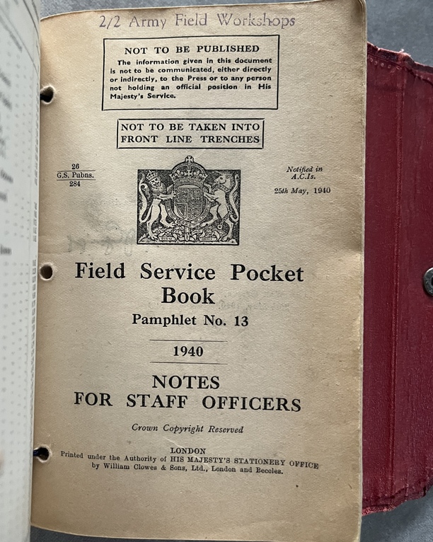 This authenticated, inscribed Field Service Book is a unique primary artifact from that campaign — a tangible witness to one of the lesser-known but most dramatic retreats of WWII.